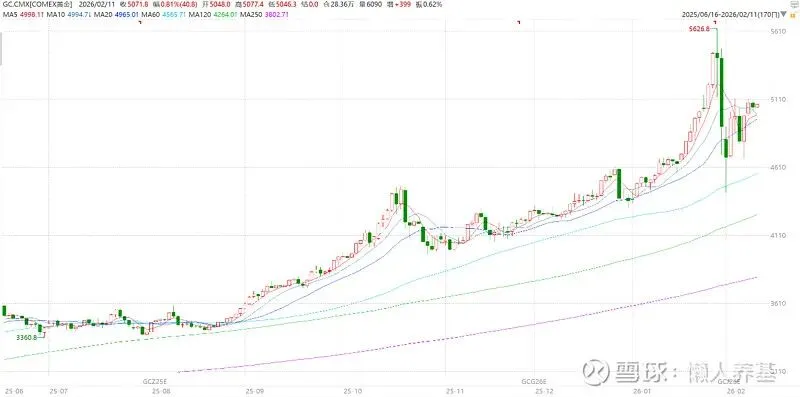最近,黄金市场经历了一场罕见的“过山车”行情:1月29日,金价一度飙升突破5600美元/盎司的历史高点;但仅仅两个交易日后,2月2日便跌破4500美元,短短三个交易震荡幅度超过了20%;而截至2月10日,又强势反弹重回5000美元之上。