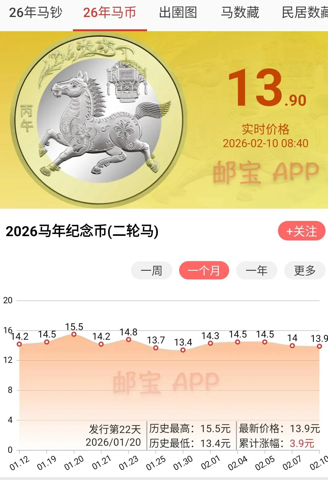 2026年马年普通纪念币,最近的市场行情其实也是出现一些小幅下跌,目前2026年马年普通纪念币也已已经跌到14元左右,收购报价也已经来到了13.8元左右基本上也跌破了14元大关,好在目前来看,整个成交量也算是比较活跃。