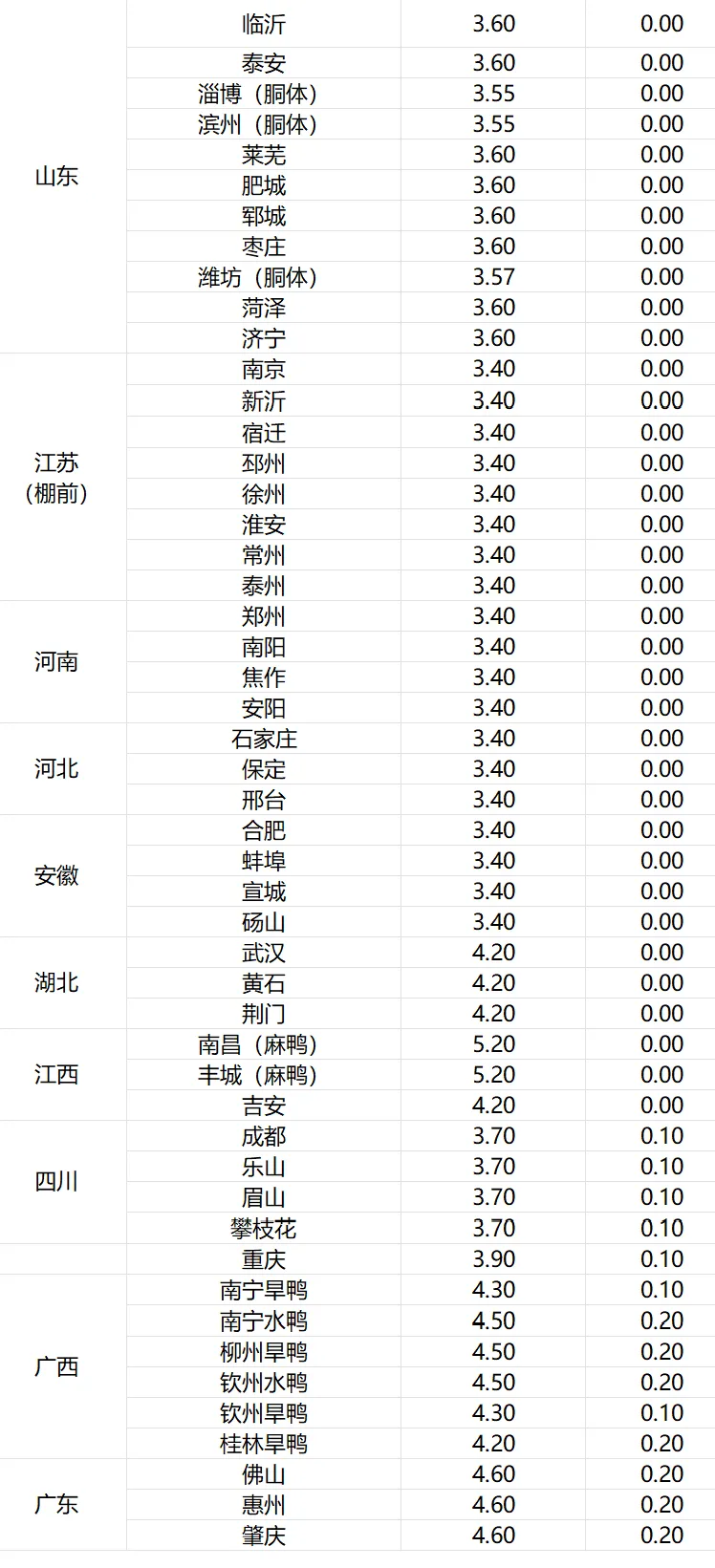 1、明日鸭苗(单位:元/羽)