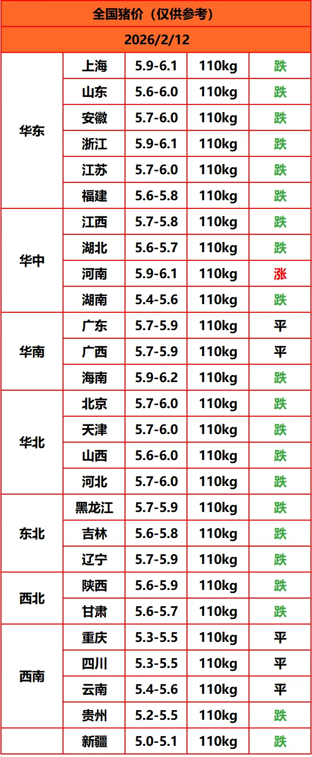 >2026.02.12生猪价格行情
