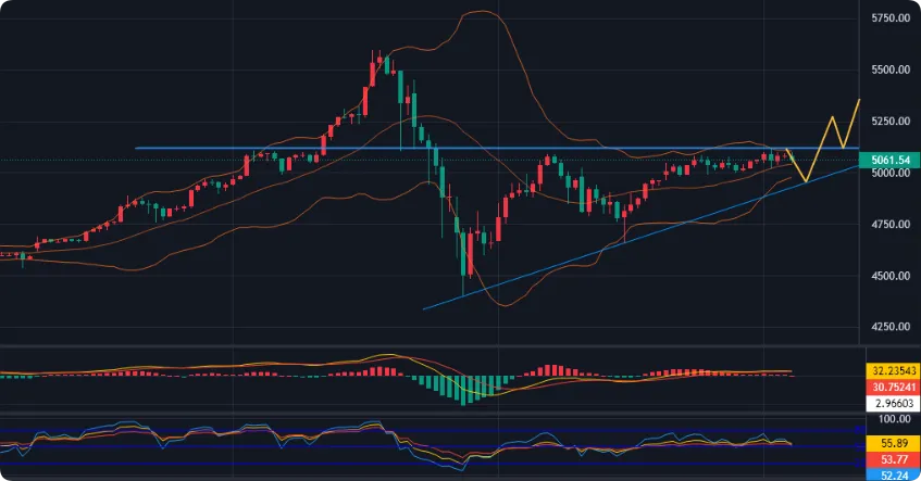 回踩4980-5010-5030分批多,损4970,目标5070-5090;