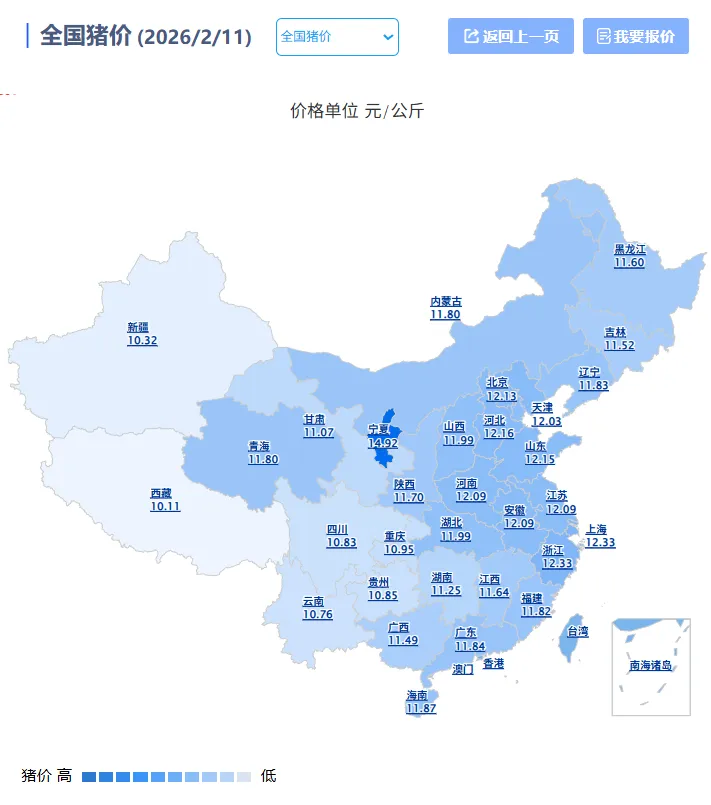 生猪(品种:土杂猪)均价为12.16元/公斤,猪价较昨日下跌了0.26元/公斤;