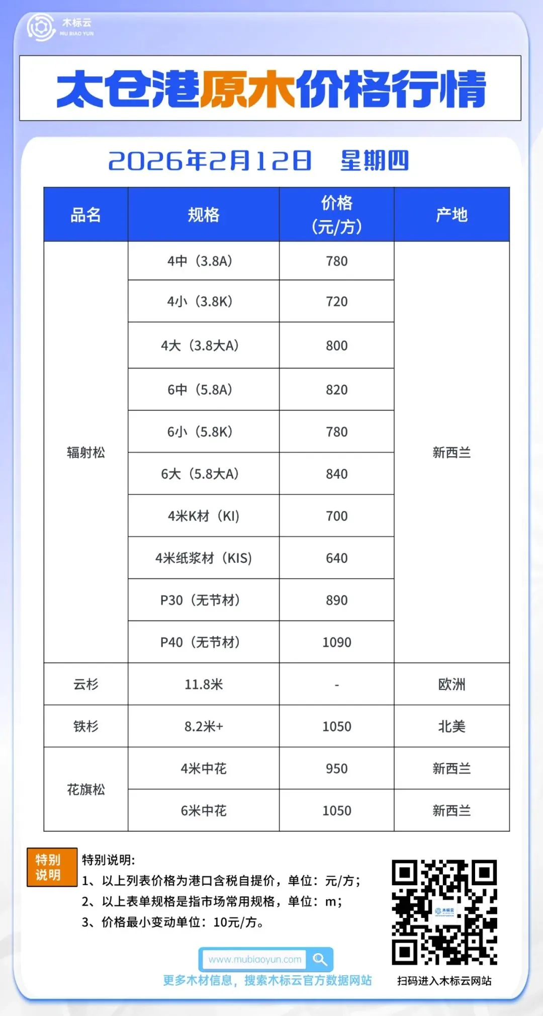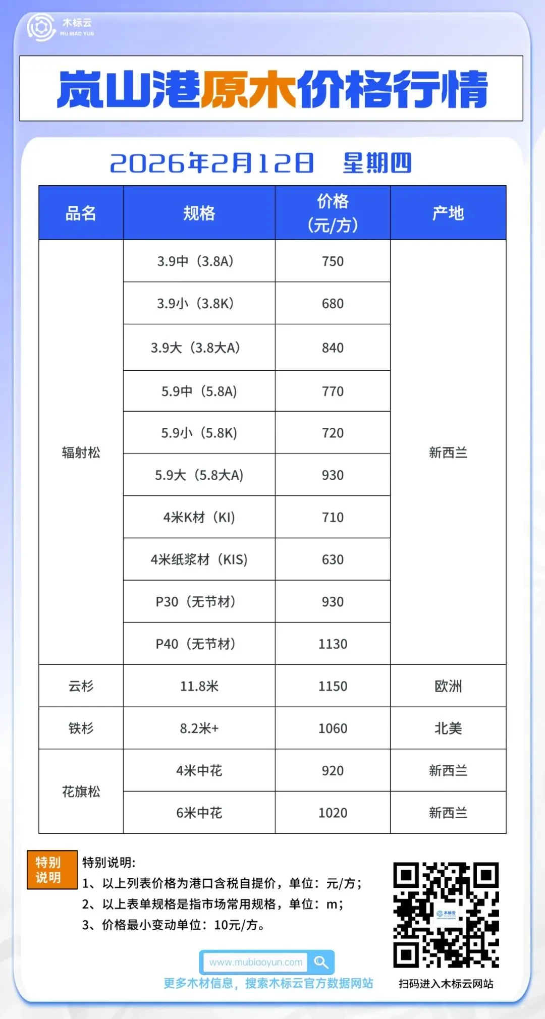 当前位置:首页>行情>2月12日 | 原木全国主要港口现货价格行情
