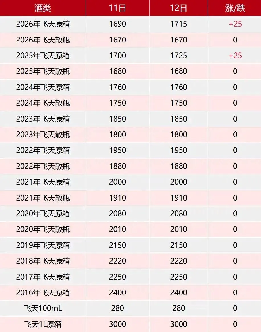 飞天持续上涨!茅台酒2月12日行情价