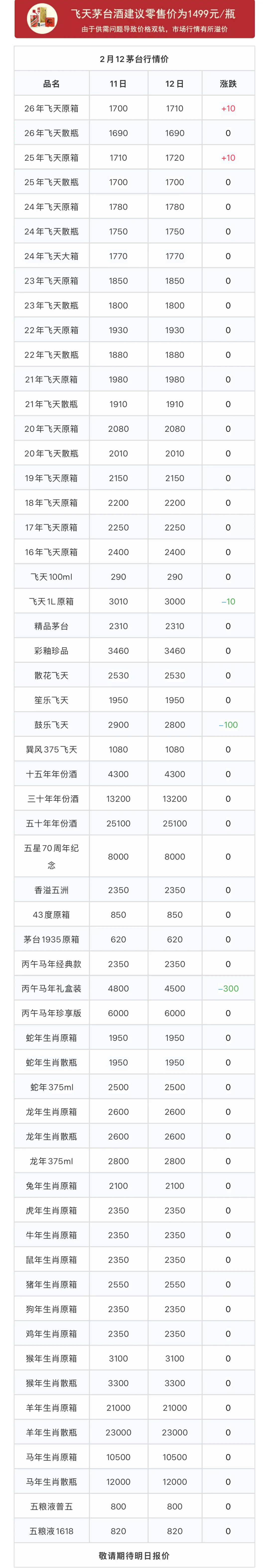 当前位置:首页>行情>2月12日飞天茅台最新行情——飞天持续上涨!