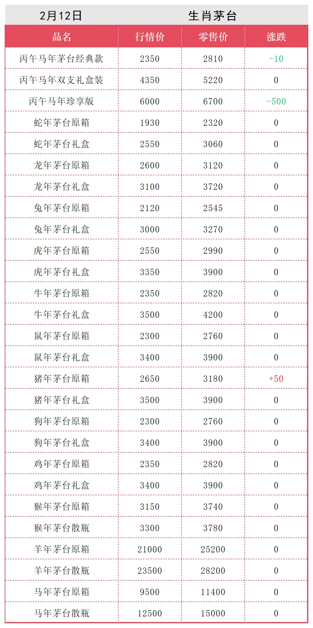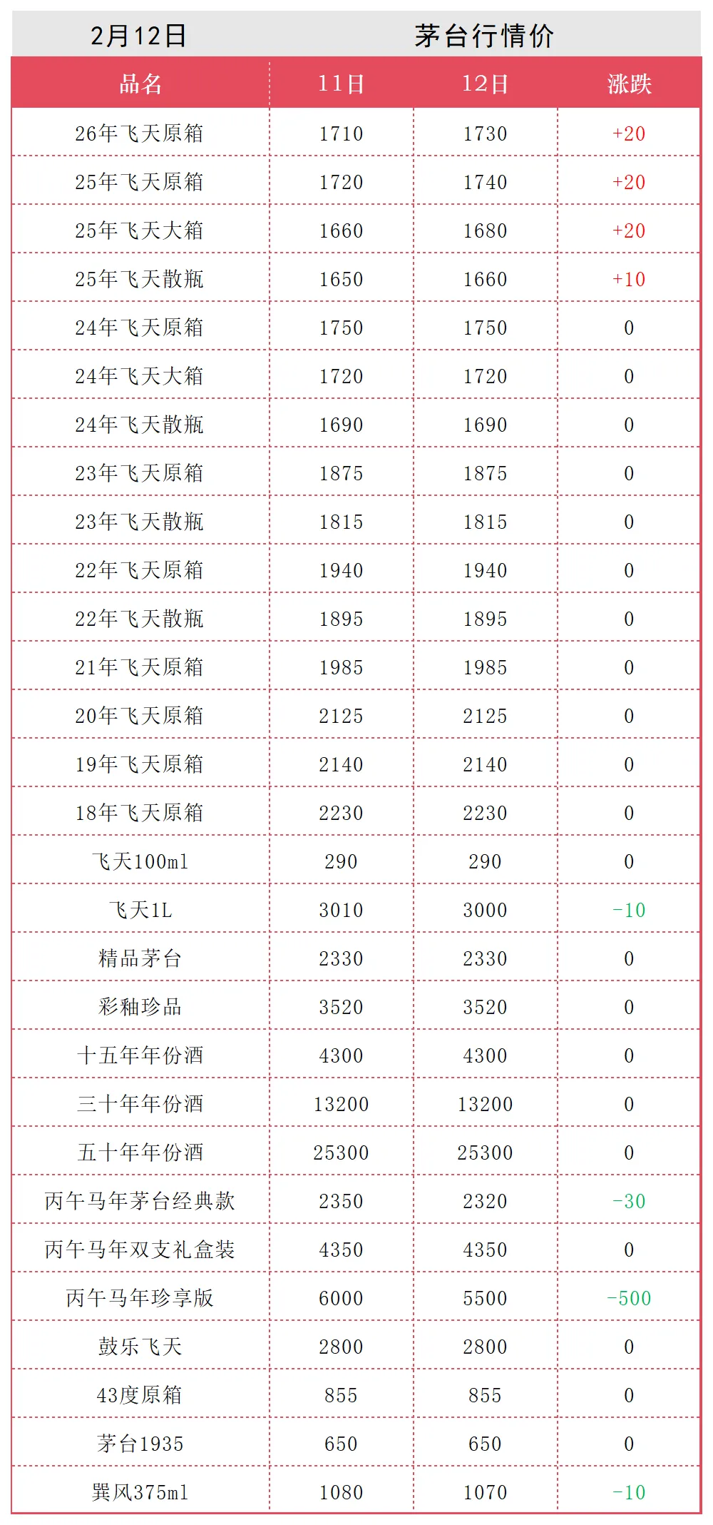 2月12日名酒行情价 飞天涨