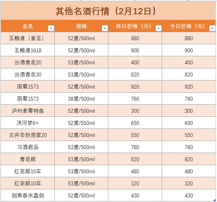 2月12日 飞天茅台上涨 回收行情有涨跌 白酒回收行情参考价