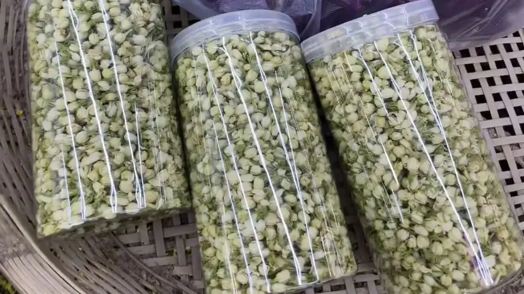 不远处,安国市场的茉莉花专营店前围满了人。店主张大姐忙着包装茉莉花,她说:“茉莉花统货68-72元了,这几天买去泡年茶的人特别多,销量比平时翻了一番。”