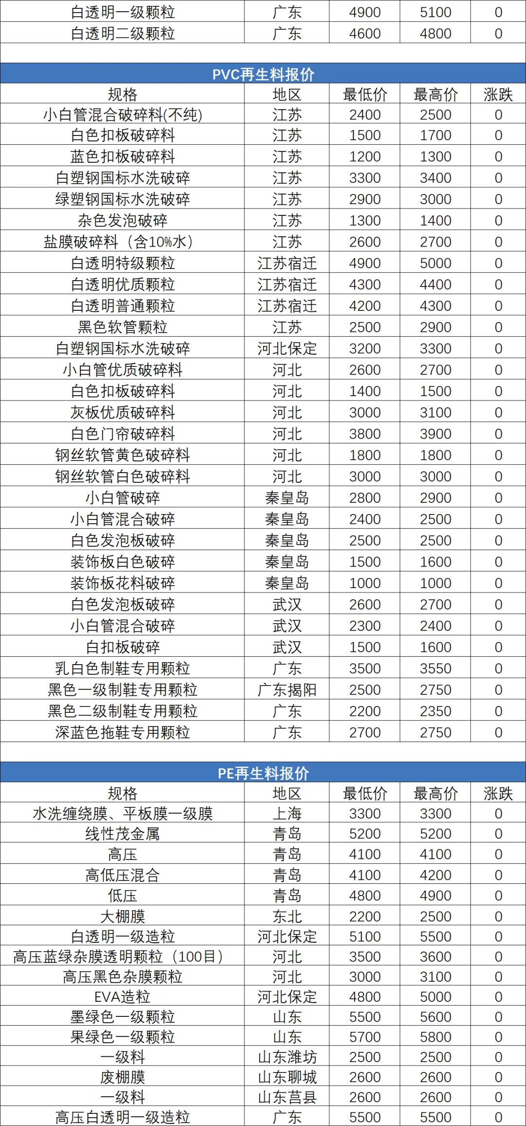 环比下降的商品共有1种,跌幅的产品是LDPE(-0.19%)。