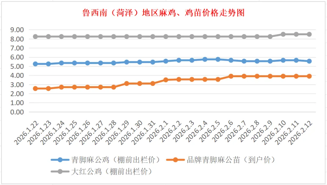 品牌青脚麻公苗(多品种快大型):价格稳定,到户价4.20元/羽,稳。