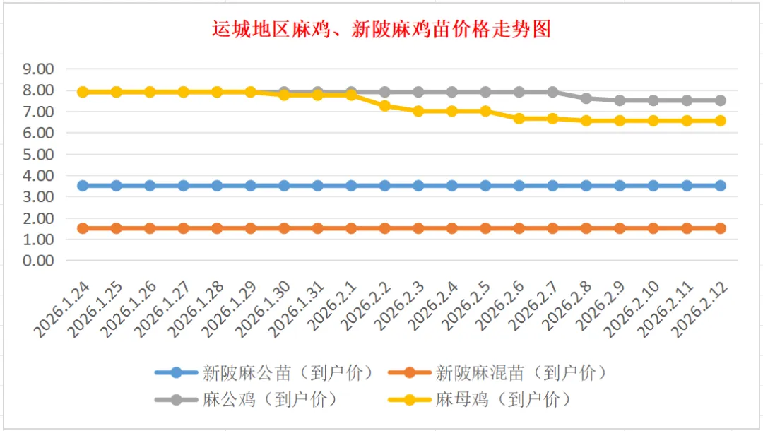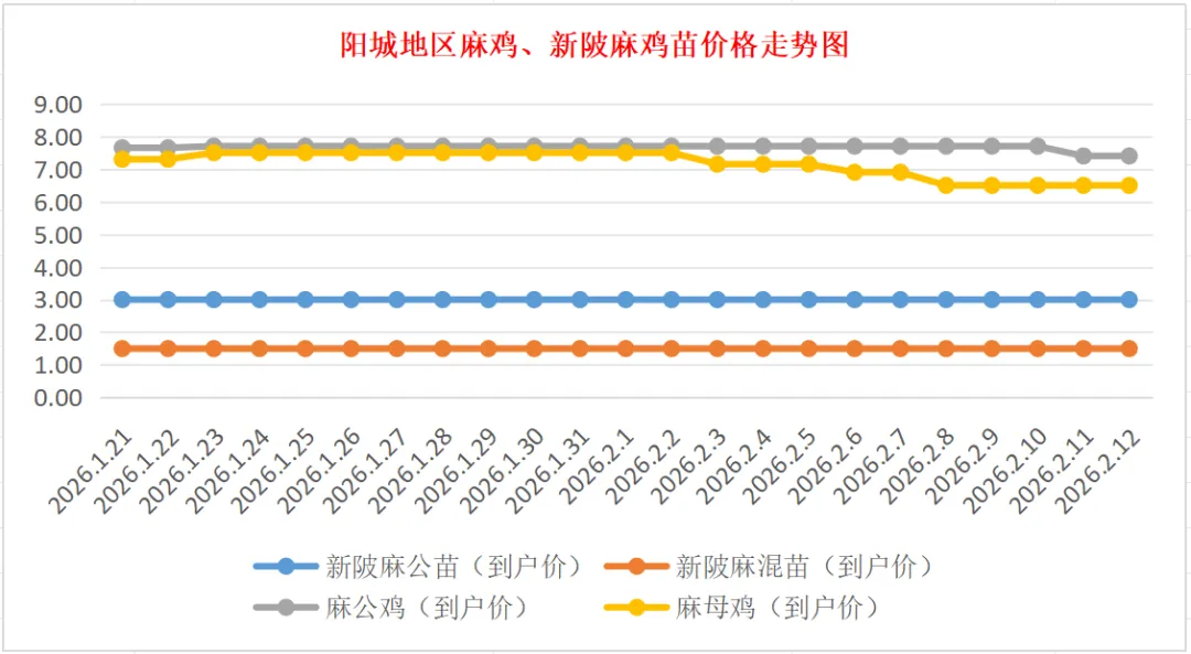 普通新陂麻:价格稳定,到户价公苗3.50元/羽,稳。