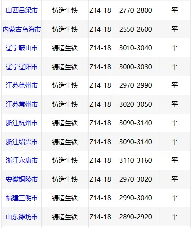 2月12日华南铸造 生铁价格稳,Z18广西2980,高州3020,阳江3020,现金含税。(单位:元/吨)