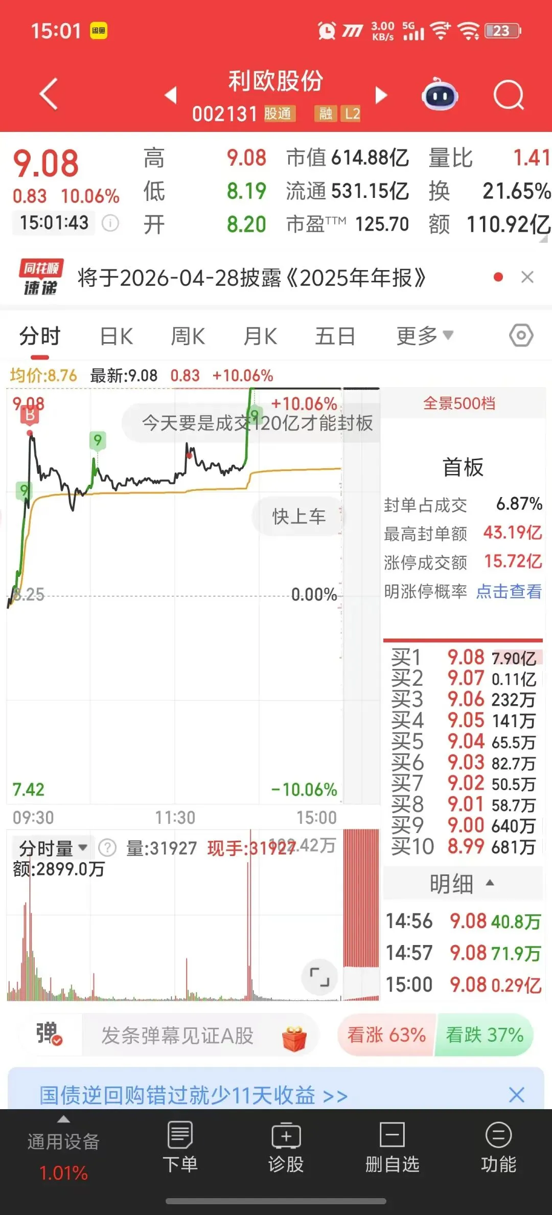 - 利欧股份(追涨+午后加仓,收获涨停)