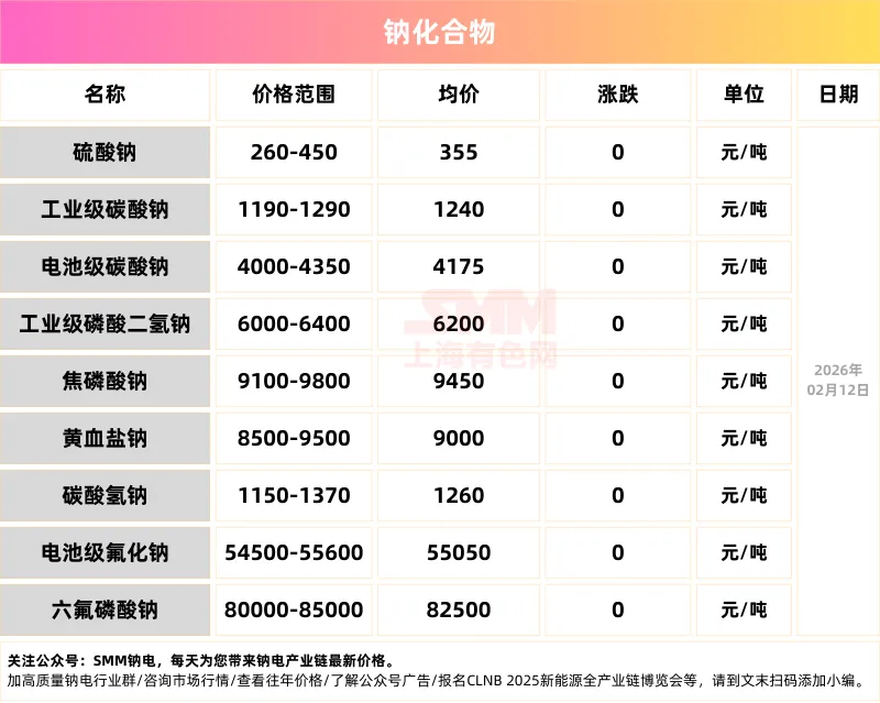 每日获取最新钠化合物、前驱体、正极材料、硬碳、电芯、电解液价格