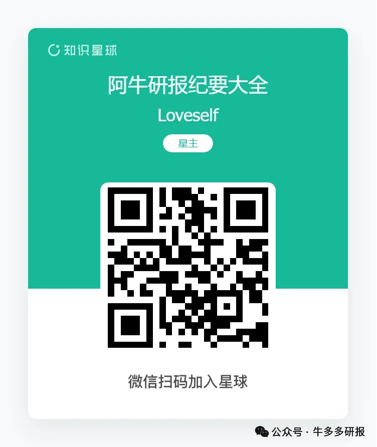 请扫描下方二维码加入“阿牛研报纪要大全”知识星球