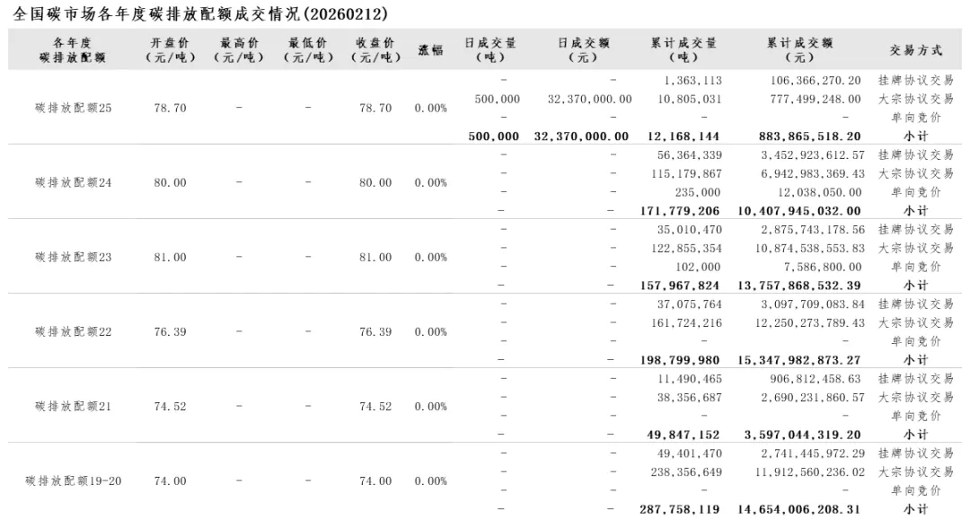 当前位置:首页>行情>行情 | 全国碳市场每日综合价格行情及成交信息20260212