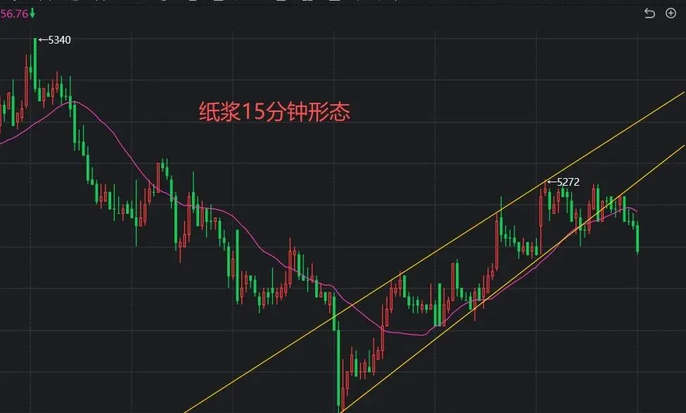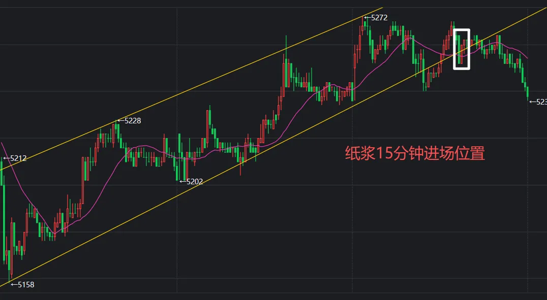 纸浆很多时候都是来回扫单比较多,这个纸浆的空是第二次的进场,第一次的单子因进场位置较晚,止损位置就很难把控,而损位正好在震荡区间内,价格不管是回调还是反转都需要一个修正后的震荡周期,而这个周期过后进场才是稳健的,震荡周期的止损要大于震荡时的位置,在出现第二浪的突破后的回调是进场的最佳位置,而我直接就在“