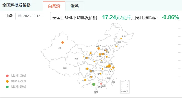 全国白条鸡批发价格