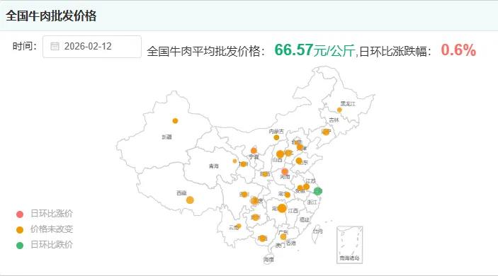 全国牛肉平均价格:66.57元/公斤