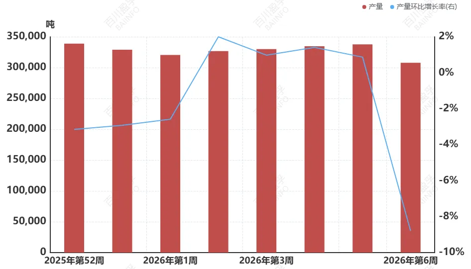 据百川盈孚统计,预计2026年腊月二十三-除夕(2月10日-2月16日)当周玉米淀粉产量约272300吨,较去年春节期间(2025年1月22日-1月28日)减少48800吨,其当周淀粉行业开机率预计为49.12%,较去年春节期间(2025年1月22日-1月28日)降低10.3%。