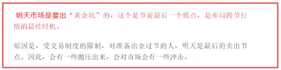 这个节点买票,就是博弈节前最后一个交易日和节后第一个交易日,以及节后第一周,市场会给“红包”。