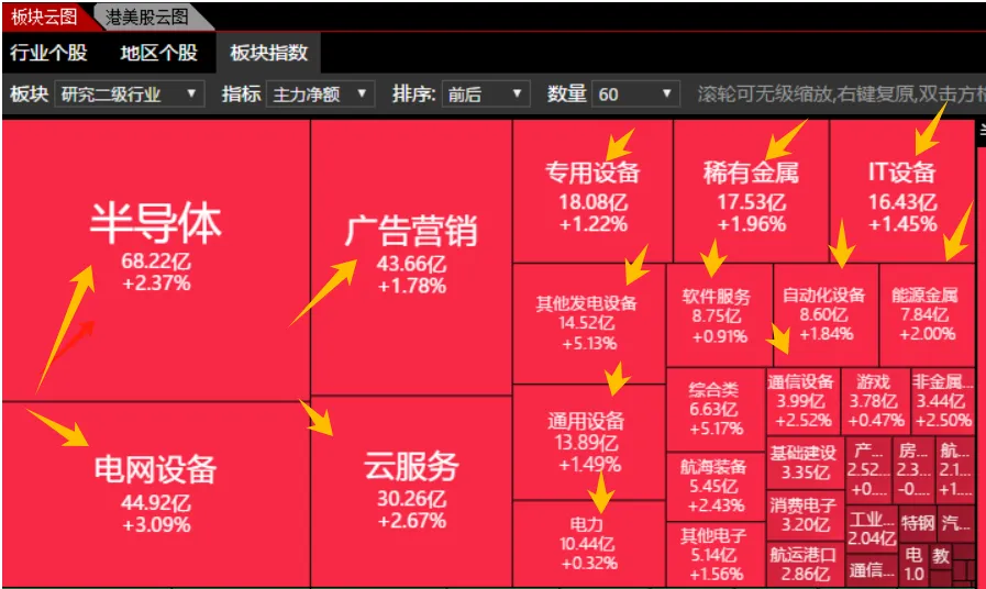 围绕科技成长+能源主线布局,能源设备、AI应用、CPO、光伏、商业航天,半导体芯片这些方向是节后行情的核心。