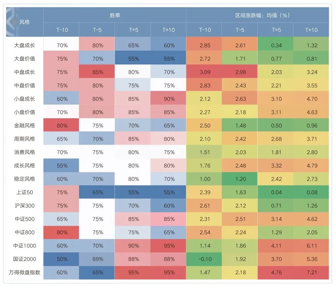 特征一,风格反转规律:节前大盘占优,节后小盘成长接力。