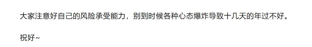 这一周要是做对了的,比如说前两天买SD,后面两天买算力,特别是边缘算力的找规律,就跟小学生做题一样,这也是跟随量化的一种重要方式。明天上午应该会有一批兑现,就是大家都以为是红包行情猛冲的时候,有人会逢高砸盘ai应用的新容量可以揭晓,因为我已经昨天割了,没错,就是昆仑边缘算力那几个应该都是假期有发酵的,大位应该一字到节后,没想到介入方式竟然只是个小小的T板,没有多余反应机会;考虑去其他弹性正宗标的注意好做涨价的标的兑现;假期往往是不确定的时候,涨价容易被兑现,要是跌了就难受了其他没啥好说的了,各自买看好的节后标的,或者持币找到确定性方向节后找到最核心的顶一字,有先手,也是个不错的选择。请注意:本文仅作为个人复盘思考的记录,其中会提到诸多个股,但都是个人观察,不会买入,更不会推荐买入,仅以此方便自己复盘。股市有风险,投资须谨慎!