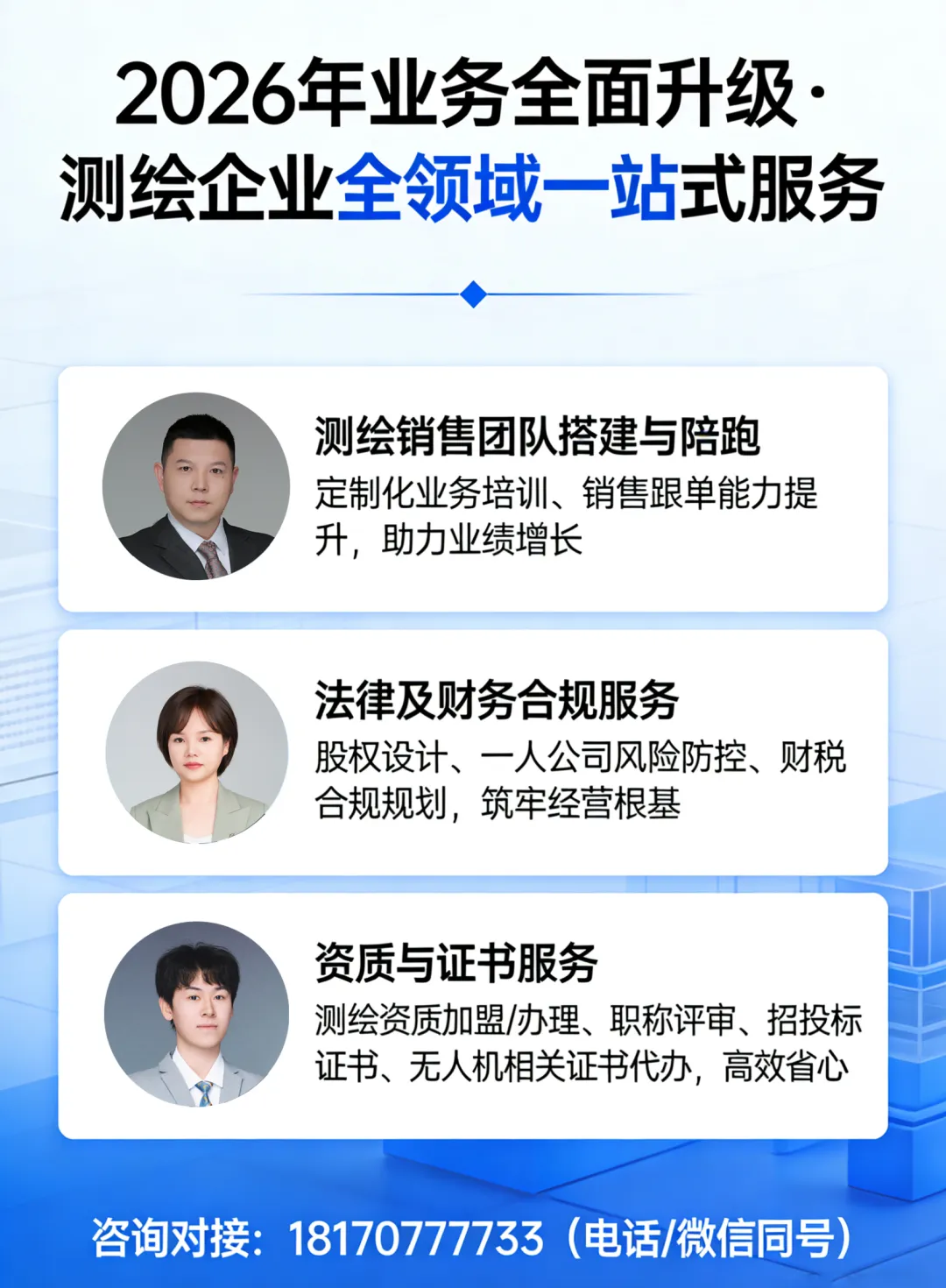 对很多人来说,现在办测绘资质,不是赌行情马上变好,而是不想再等一个虚无缥缈的 “最佳时机”。没有资质,行情再好,也跟你没关系;项目再大,你也只能看别人做;技术再强、团队再拼,也只是 “野路子”。现在行业环境,看似不好,其实对真正想长期做的人,反而更友好:市场在洗牌,不正规的、没实力的,慢慢被淘汰;监管越来越严,无证经营、违规作业的空间越来越小;流程在优化,只要条件达标,办证路径越来越清晰;竞争虽然激烈,但有资质的人,永远比没资质的人,多一条活路。