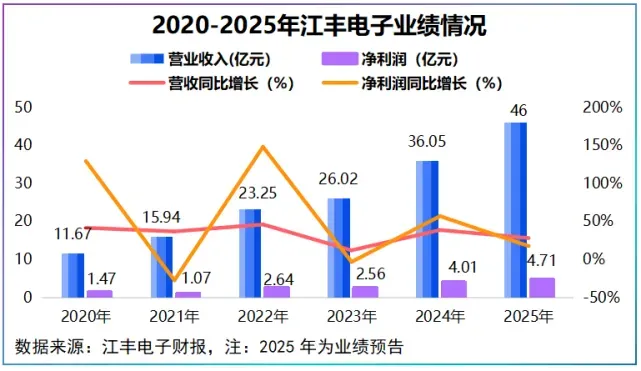 就在1月末,江丰电子公布2025年业绩预告,预计实现营收46亿元,实现净利润4.31~5.11亿元,同比增长7.5%~27.5%