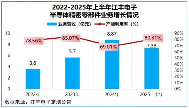 随着存储与先进制程景气度回升,公司半导体零部件产能利用率从202469.01%跃升到了2025年上半年的80.31%,产能逐步释放。