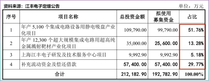 2025年底,江丰电子甩出19.28亿元定增,其中,约10亿元投向半导体零部件静电吸盘,2.56亿元用于金属溅射靶材扩建。