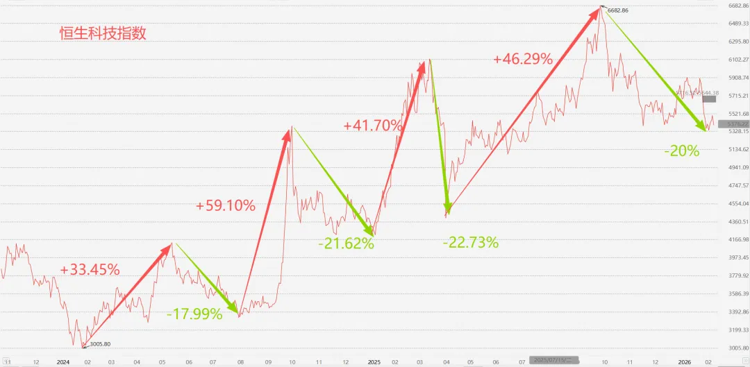 港股方面,AI大模型方向的表现堪称史诗级暴涨。Minimax、智谱连续拉升,市值快速扩张,甚至吸引海外资金跟风。韩国股民从去年买小米、泡泡玛特,到今年转向大模型公司,说明全球资金对AI叙事的追逐热度仍在。但与此同时,恒生科技整体却显得疲弱。这种分化,根源还是流动性结构问题。港股高度依赖资金结构,一旦内外资都偏谨慎,波动就会被放大。但港股有一个特征——跌得狠,反弹也狠。过去几次技术性熊市之后,反弹幅度往往惊人。