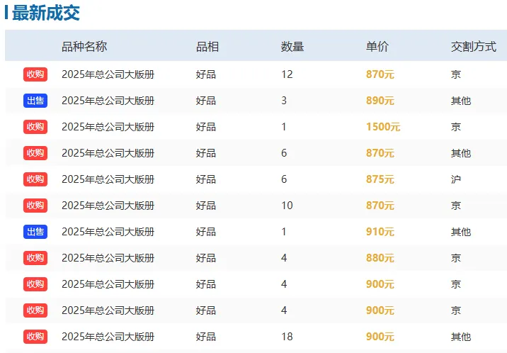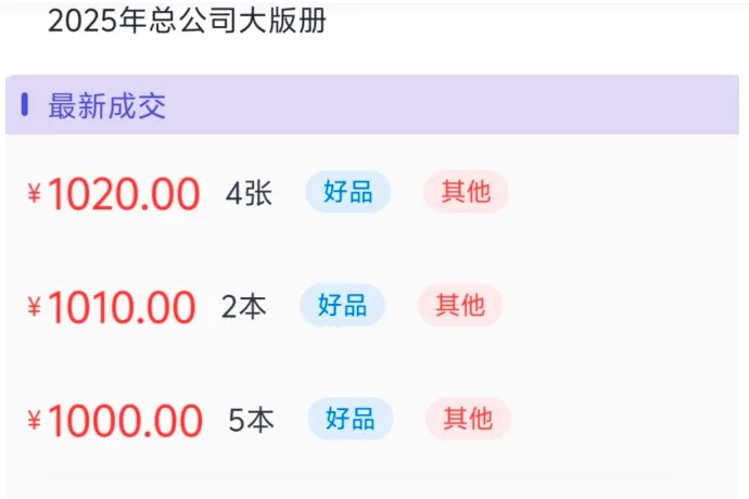跌幅最大的是刚上市的2025年大版册,从1020元跌到870元,跌幅达14.71%,直接从盈利品种变成了亏损品种。