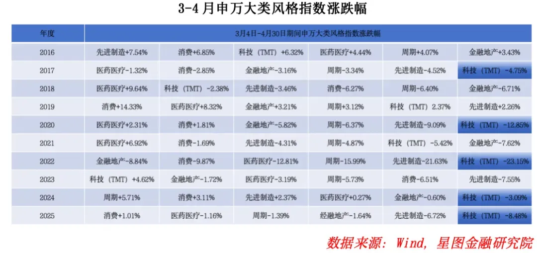 从中期来看,3-4月A股将进入年报与一季报的密集披露期,市场为规避业绩踩雷风险,整体风险偏好将受到压制。从历史走势来看,这一阶段市场整体跌多涨少,板块表现也呈现出与节后至两会前相反的特征。前期涨幅居前的科技板块表现相对靠后,而防御性板块抗跌性凸显,这一特征在熊市行情中尤为明显。因此,中期布局需重点规避业绩存在较高不确定性的板块。