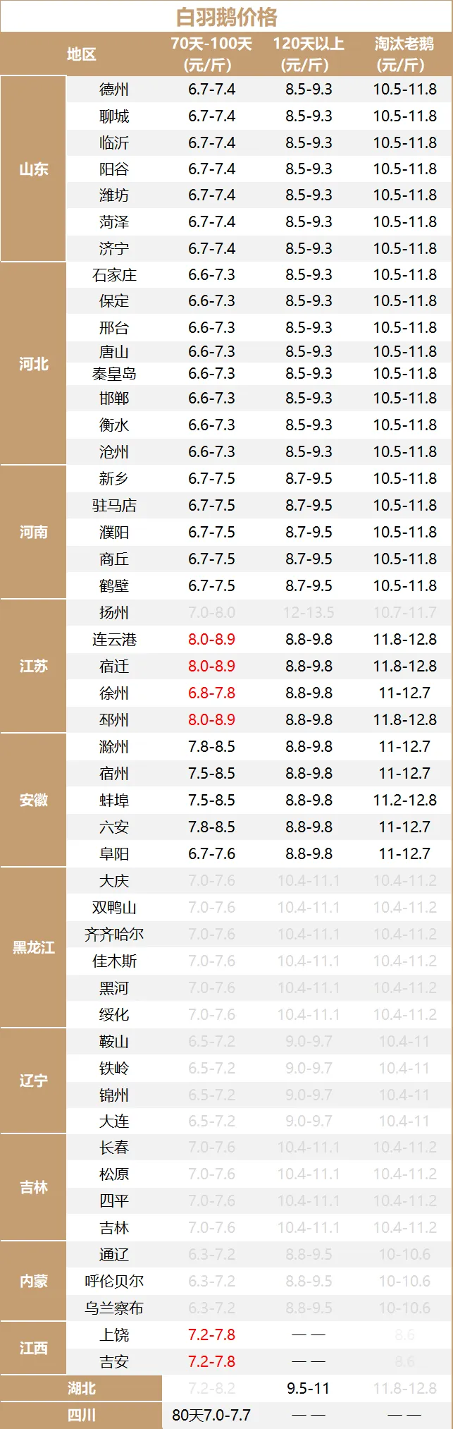 白羽鹅价格在不同地区存在波动,市场相对需求平稳。