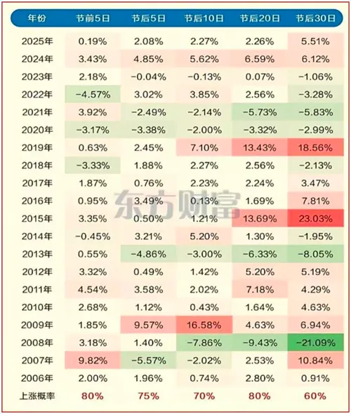 节后持续性最强:节后20日上涨概率重回80%,意味着红包行情不是一日游,而是有中期持续性;