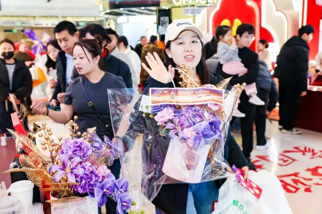 让人期待的是,一场“繁花紫境”主题美陈,将“紫蕊丛开、芳菲满园”的春意化为可步入、可留影、可分享的沉浸空间——繁花似锦与茅台酒、信誉楼的建筑意象交相辉映,不仅陪伴消费者度过三日的年味儿时光,更将驻留商场整个春季,持续传递“策马向春风,前程似锦”的美好祝愿。