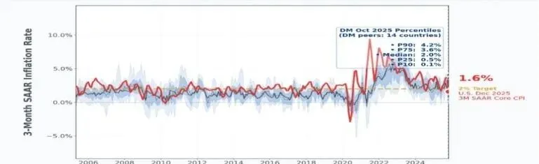 美国核心通胀率已连续第二个月运行在美联储2%的目标之下,并低于多数发达市场水平,