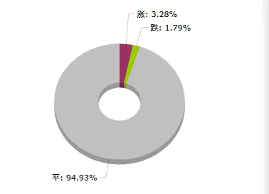 环比下降的商品共有6种,跌幅前3的产品分别为异辛醇(-1.48%)、正丁醇(工业级)(-1.08%)、丁二烯(-0.65%)。