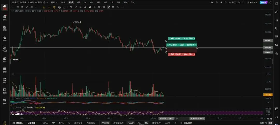 大饼带量突破66529右侧追多,66033带量跌破反抽无法收回右侧追空,带好止损。