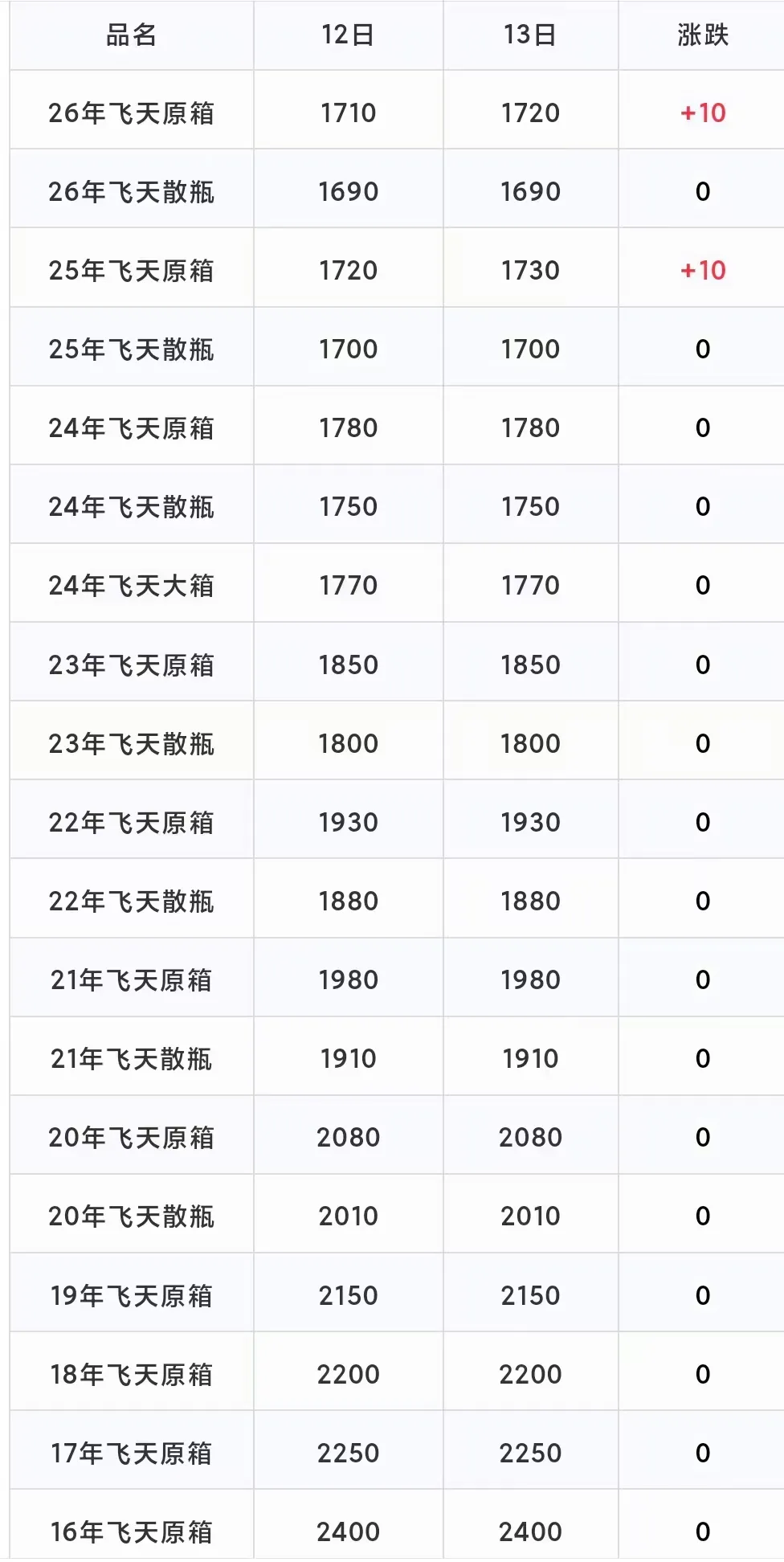 茅台行情价丨2026年2月13日 | 茅台15年大涨