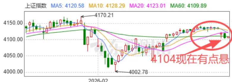 指数想冲4200,现在是在“蓄力”。上面压着4138,没放量的话,这里还得磨一磨。下面关键看4104。最近几次回踩到这里,都被迅速拉了回去。只要日线不有效跌破4104,跨年行情的框架就没散。