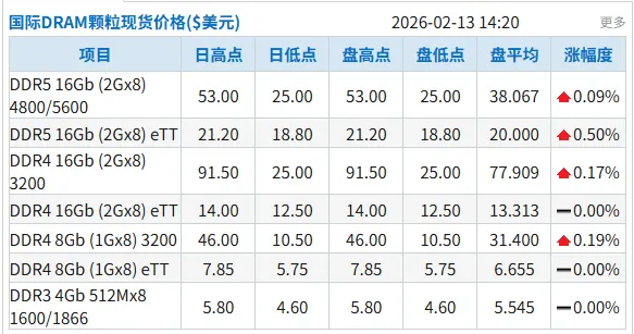 今日国际DRAM颗粒现货价格整体来看,小幅上涨为主,部分颗粒稳定未见涨幅。今日DDR5 16Gb (2Gx8) eTT上涨0.5%,均价20美元;DDR3 2Gb 256Mx8 1600/1866上涨0.71%,均价3.55美元。