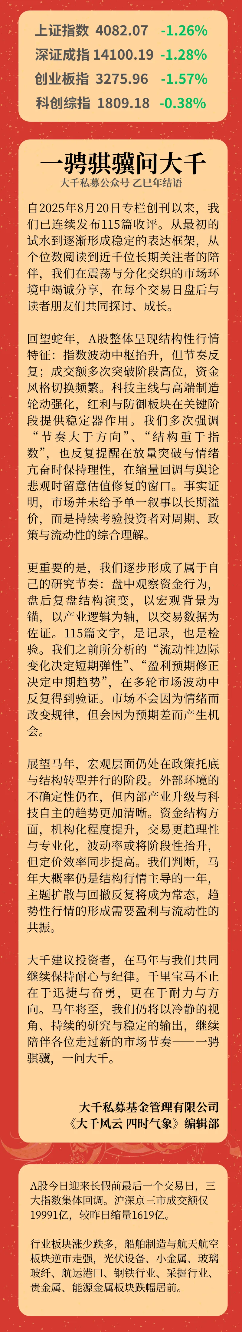 【今日行情】时来风起驰良骥,路转天开问大千.