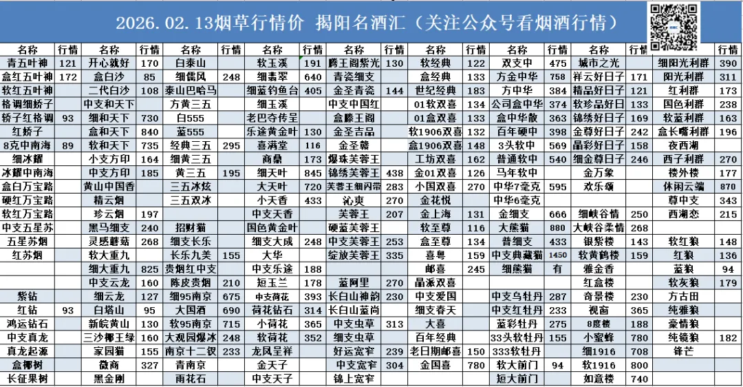 名酒汇02.13行情报价