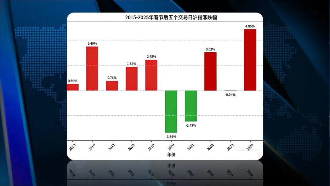 蛇年最后一个交易日,市场以缩量调整收官,创业板指领跌。热点快速轮动,超3700只个股下跌。军工板块、半导体板块。节后开门红能否实现?今年春季行情能看到多高多远?节后市场热点还在科技成长赛道吗?今晚19:30的《天下财经》嘉宾于尧、孔令锋为您答疑解惑。今天是蛇年最后一个交易日,市场以回调收官。节后会怎么走呢?我们来看统计:根据历史数据,过去10年,节后第一周的走势涨多跌少。咱们就展望一下,节后第一天,如果市场直接高开,投资者应该怎么做?