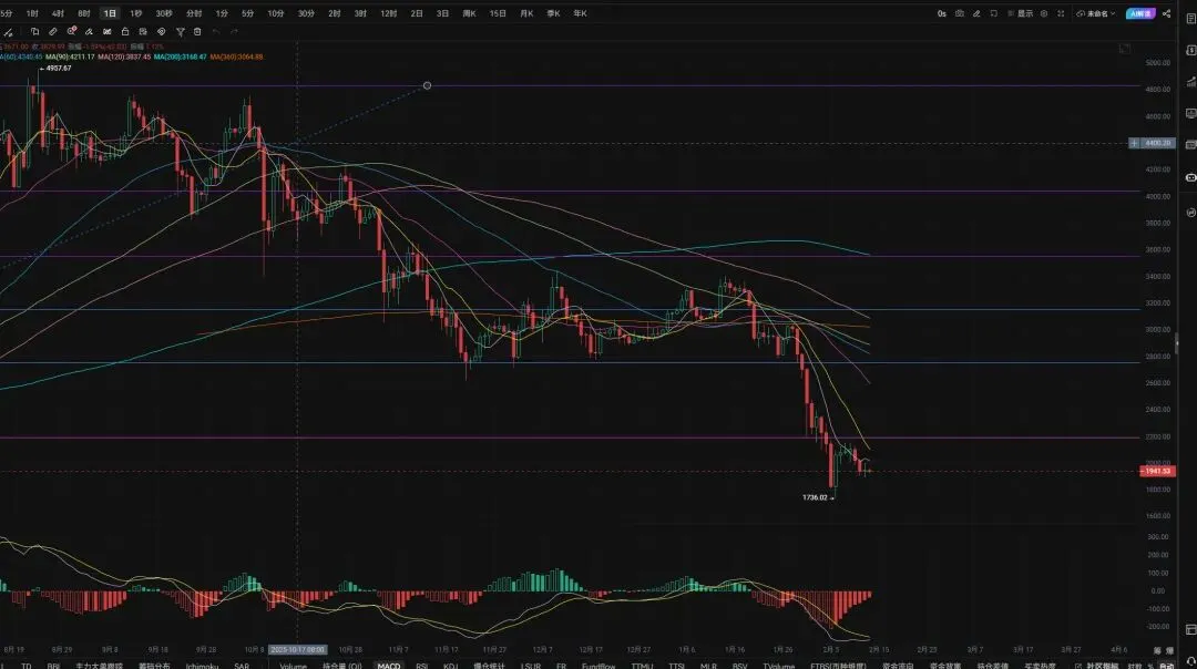 以太坊行情延续弱势格局,整体呈现缓跌、阴跌持续走低的走势,市场二次探底的可能性成为当下核心关注焦点。当前以太坊价格承压运行,受宏观流动性与大盘整体情绪压制,短线维持偏弱震荡格局,量能同步萎缩,价格方向尚未明确,短期需警惕进一步下探的风险,从盘面表现来看,以太坊近期持续走弱,整体空头氛围浓厚,虽当前接近超卖区间存在技术性反弹的潜在需求,但反弹力度仍受量能和上方压力制约,暂无明确企稳信号。操作上建议以谨慎观望为主,轻仓参与区间交易并严格设置止损,避免追涨杀跌;后续需重点关注关键支撑位的企稳情况,若支撑位失守,二次探底的节奏或将进一步加快。