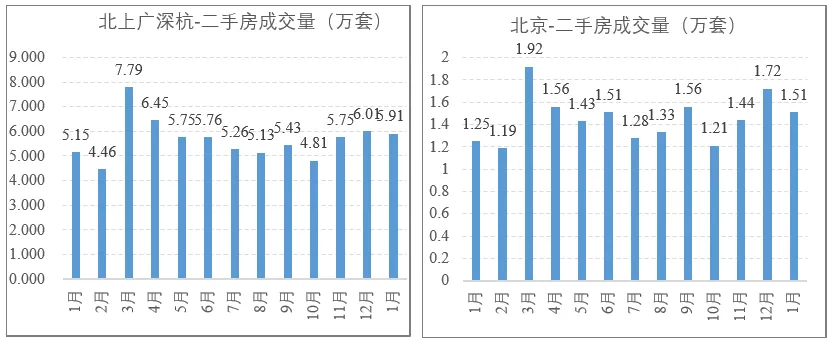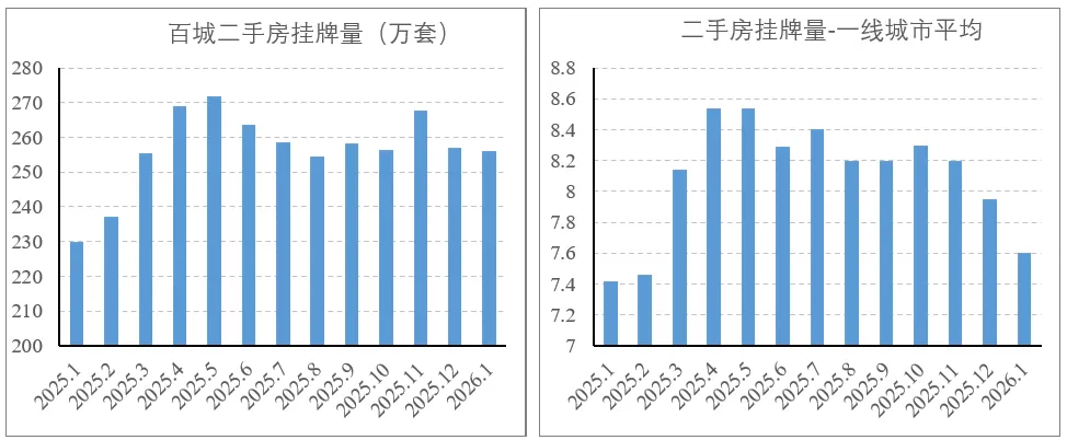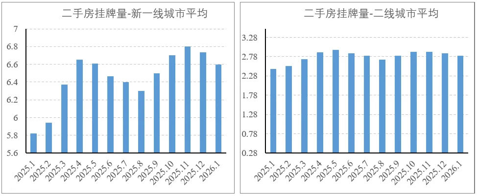 挂牌量在12月和1月连续两个月收缩,尤其以一线城市最为显著。