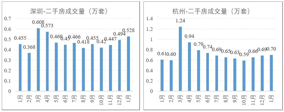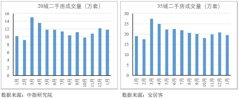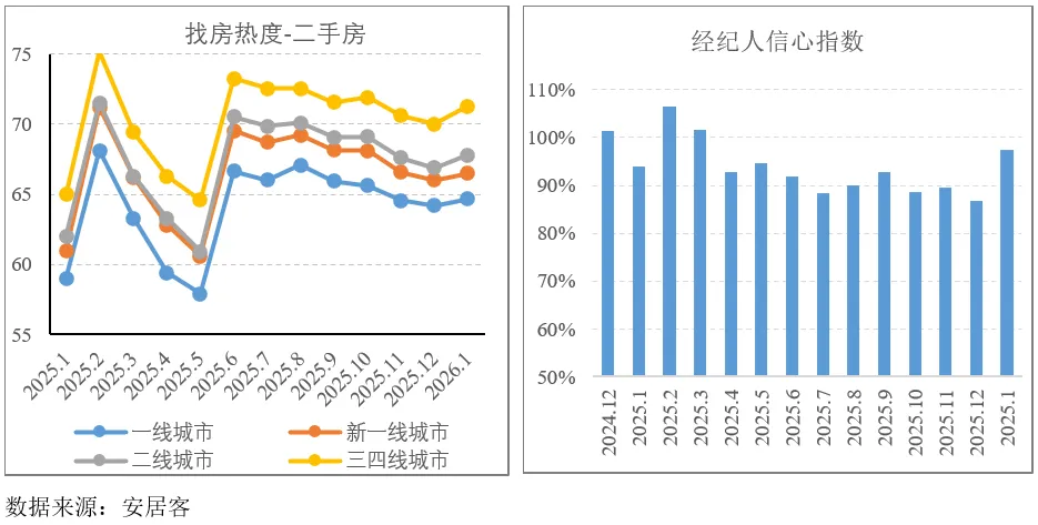 12月是热度冰点,虽然彼时成交量和挂牌量都有所改善,但还未带动热度,热度从1月开始回升,经纪人信心指数则回升幅度更大,不过单月数据解释力尚不足,需要后续数据验证。